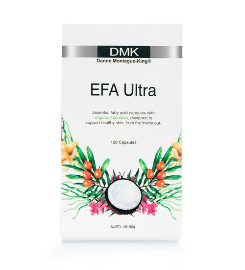 The DMK EFA Ultra supplements are a powerful group of essential fatty acids 3, 6, 7 and 9 derived from Evening Primrose and Seabuckthorn Seed Oil, and provide more than 190 nutrients and bioactive substances. EFA Ultra is designed to repair the cell membranes and help to rebuild a stronger, healthier functioning skin. These improves barrier function, and reduces skin dehydration. EFA Ultra are particularly useful for acne and inflamed, reactive skins, as well as improving hormonal imbalances, and plumping ageing skins.